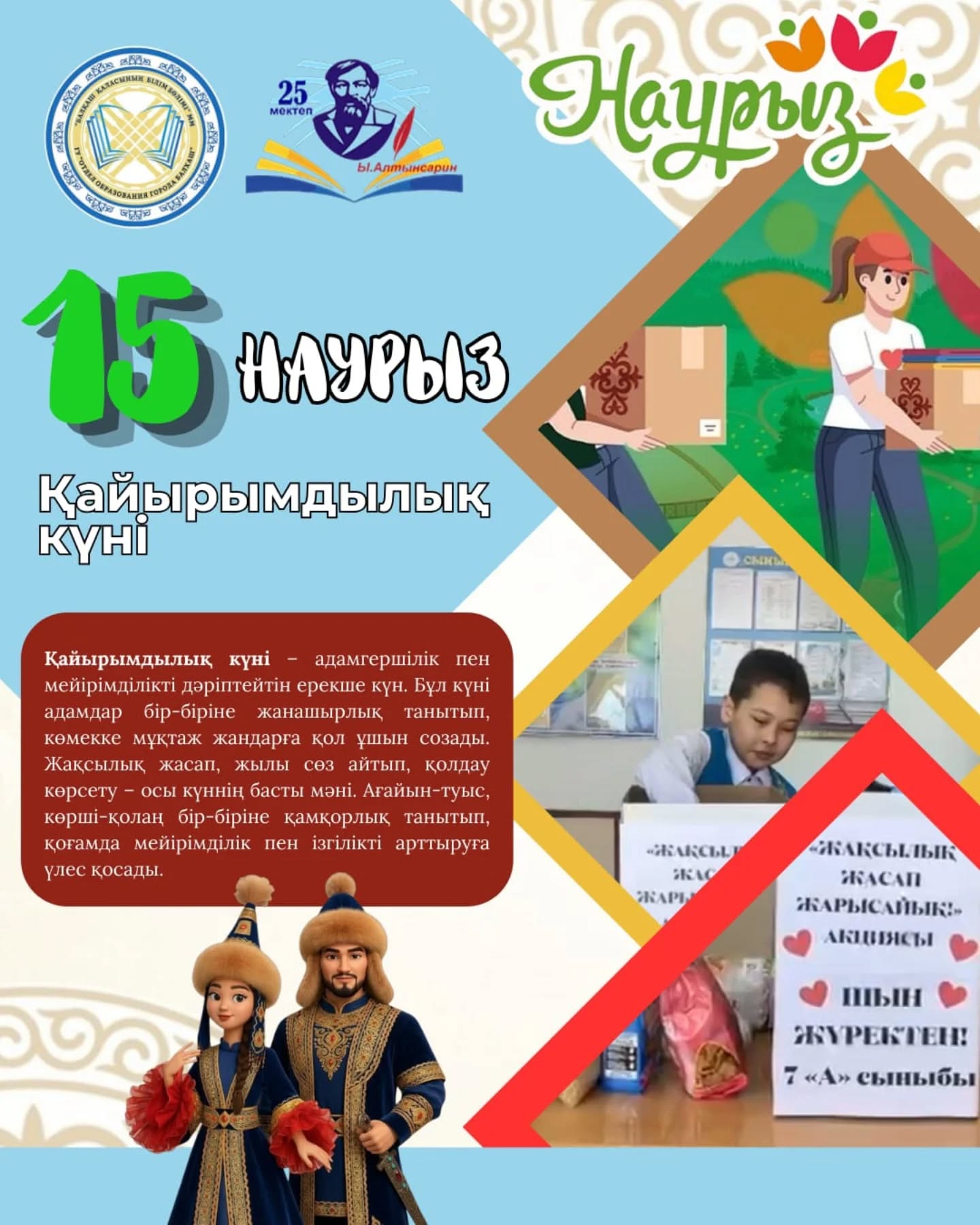 Наурыз мерекесіне орай ұйымдастырылған «Мейірімділік керуені» акциясына 7 «А» сыныбының оқушылары да өз үлестерін қосты. Оқушылар мейірімділік пен жанашырлық танытып, игі іске белсене атсалысты.