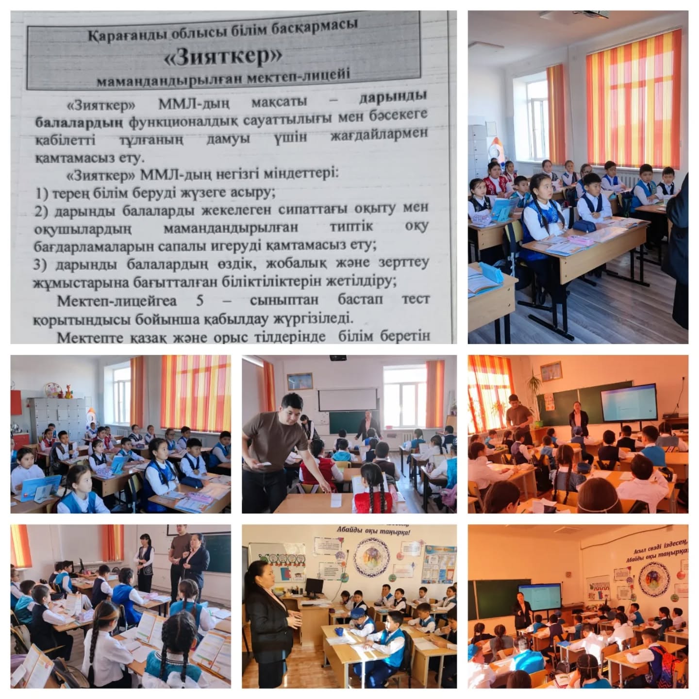 2026 жылы 13 наурызда Қарағанды облысы білім басқармасы «Зияткер» мамандандырылған мектеп – лицейінің оқытушылары Муканова Гульмира Мурзатаевна және Жүзбай Бөкейхан 4 сынып оқушыларымен кездесіп, 5 – сыныпқа конкурстық іріктеу жүргізілетінін хабарлап, қабылдау ережелері бойынша үгіт – насихат жұмыстарын жүргізді.
