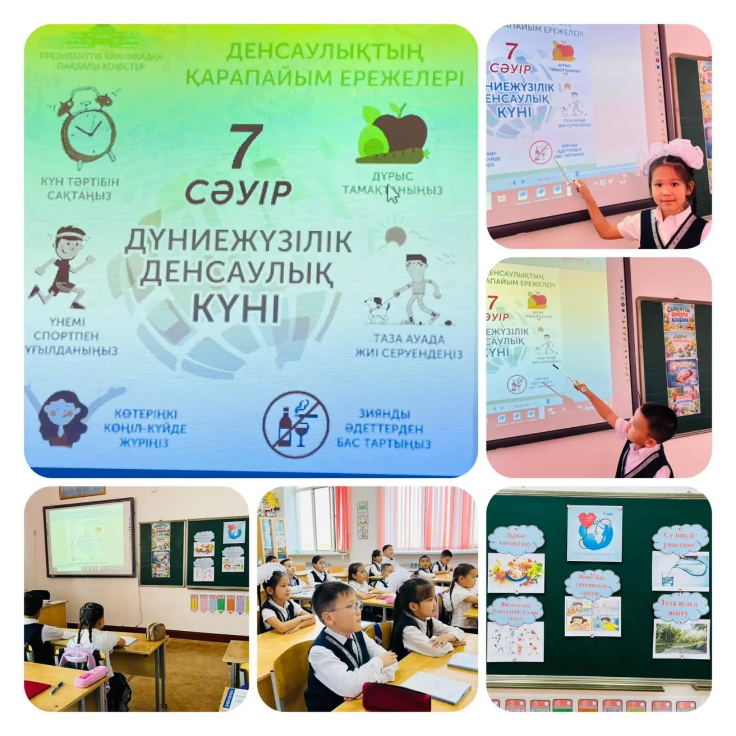 Дүниежүзілік денсаулық күніне орай, 2026 жылғы 7 сәуірде мектебіміздің барлық сыныптарында «Салауатты өмір салты – табысты болашақтың негізі» тақырыбында бірдей денсаулық сабақтары өткізілді.
