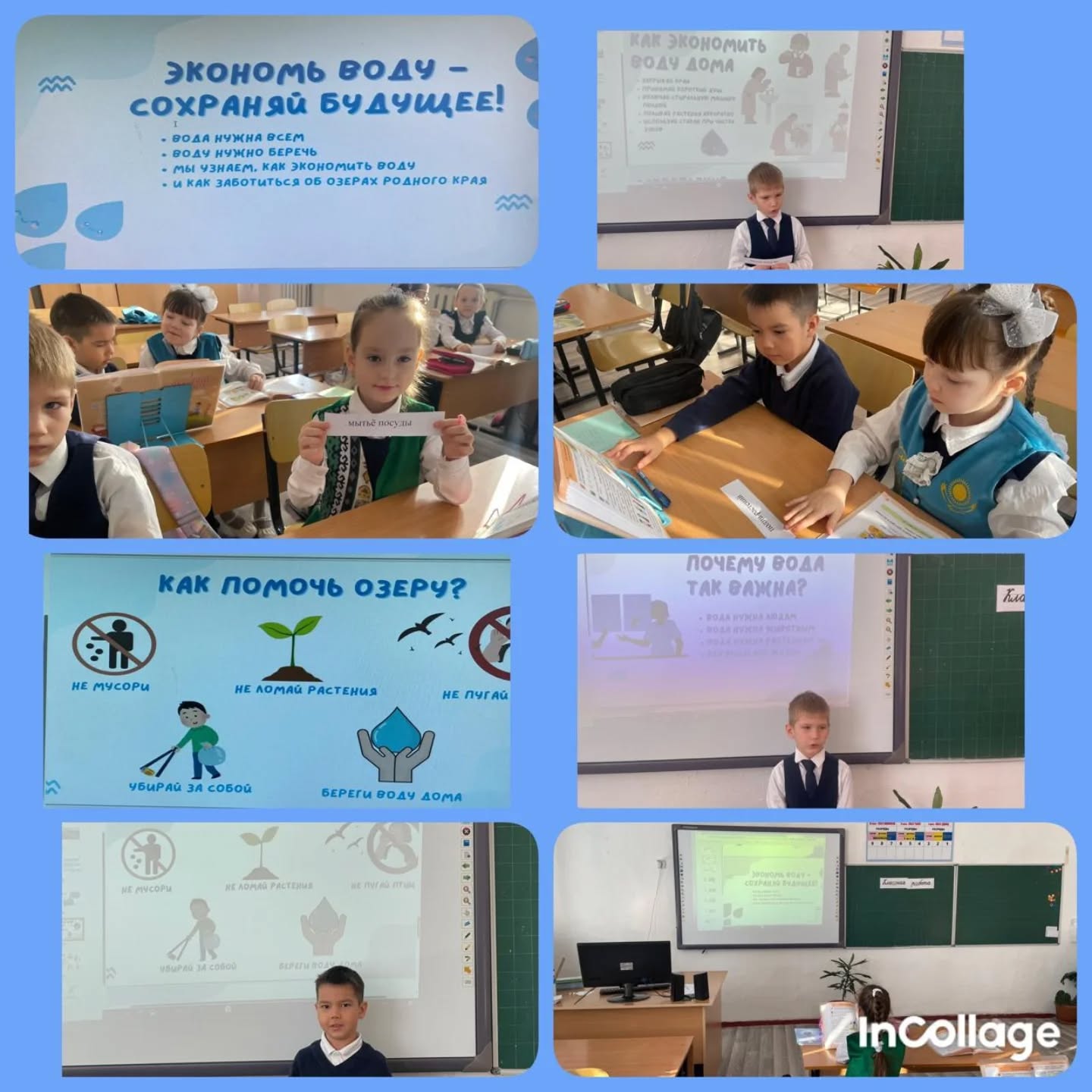 На примере известных озёр страны — Озеро Балхаш, Озеро Алаколь, Озеро Зайсан, Озеро Иссык, Озеро Каинды и Большое Алматинское озеро школьники познакомились с природными богатствами страны и узнали, почему важно беречь воду и не загрязнять водоёмы.
